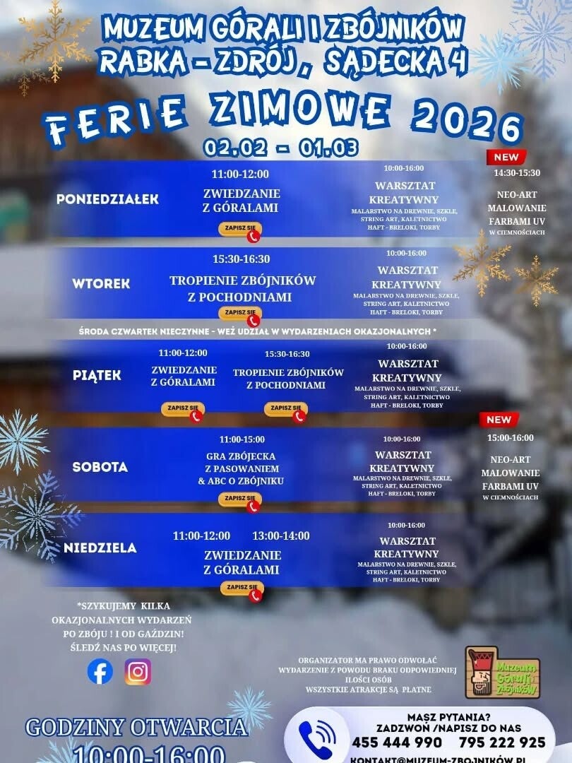 Czekamy na Was codziennie od 10.00 do 16.00. Zwiedzanie oraz warsztaty dostępne są w godzinach otwarcia.
